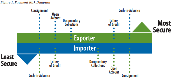 With cash-in-advance payment terms, an exporter can avoid credit risk because payment is received before the ownership of the goods is transferred.